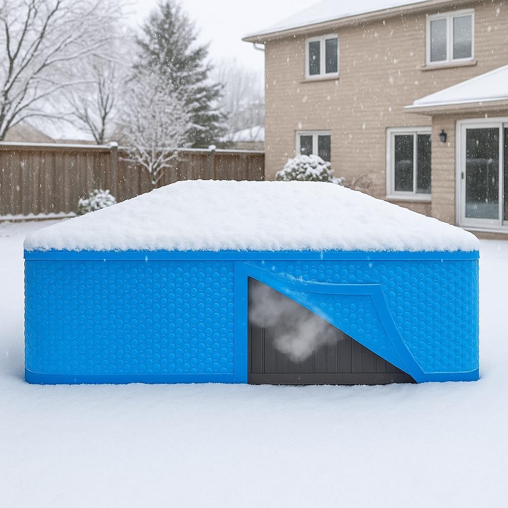 Full-Cover Thermal Hot Tub Cover (Soft Insulated Design) Upgrade your spa setup with a full-coverage thermal hot tub cover designed to help retain heat and protect your square spa from the elements. Sized at 91" x 91" x 23", this cover is made to fit most 78"–90" square hot tubs, including tubs without a rigid hard cover. Secure Elastic Tie-Down Fit Reinforced elastic tie-down straps wrap underneath the hot tub to help keep the cover in place during windy or winter conditions. The slightly oversized coverage is intentional—allowing the cover to drape over smaller tubs while the elastic straps create a snug, secure fit. Thermal Insulation & Evaporation Reduction The insulated construction helps reduce heat loss and minimize water evaporation, supporting more consistent water temperature and improved energy efficiency during cooler seasons. Weather & Debris Protection Designed for outdoor use, this soft hot tub cover provides dependable protection from rain, snow, dust, and debris. It helps keep your spa cleaner between uses and reduces unwanted contaminants entering the water. Easy to Use & Store Lightweight and flexible for everyday convenience—simply place the cover over your spa and secure with the elastic straps. Easy to install, remove, fold, and store when not in use. SpecificationsType: Full-cover thermal spa cover (soft insulated design)Size: 91" x 91" x 23"Fit Range: 78"–90" square hot tubsFastening: Elastic tie-down straps (wrap-under secure fit)Use: Heat retention, evaporation reduction, outdoor protectionTip: Measure your hot tub’s outer dimensions before ordering for the best fit.