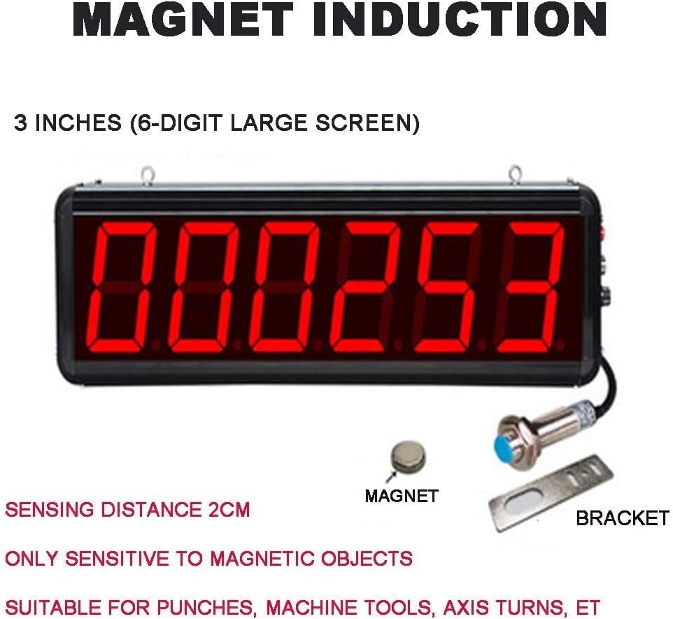 Product InformationProduct Name: Magnetic Induction CounterDisplay Size: 125X448X43mmDigital Size: 42X75mmWorking Voltage: DC12-24VCounting Range: 0-999999