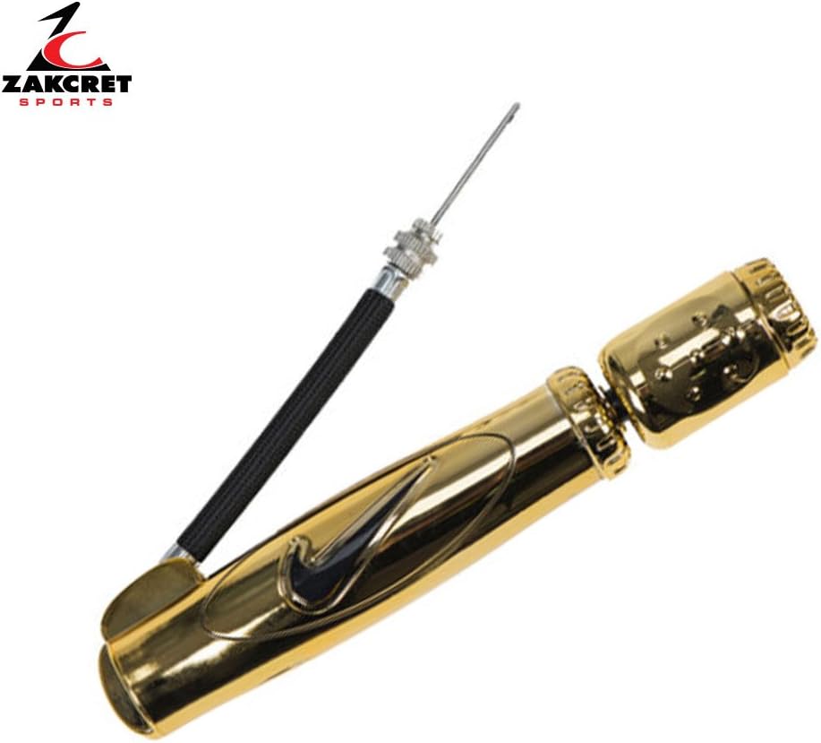 Contents: 85% Abs (Acrylonitrile Butadine Styrene) 14% Rubber, 1% Aluminum Dual-action pump for more efficient air compression Includes: extension hose and needle.Famous Nike SWOOSH logo.New Gold Metallic with Black Swoosh..