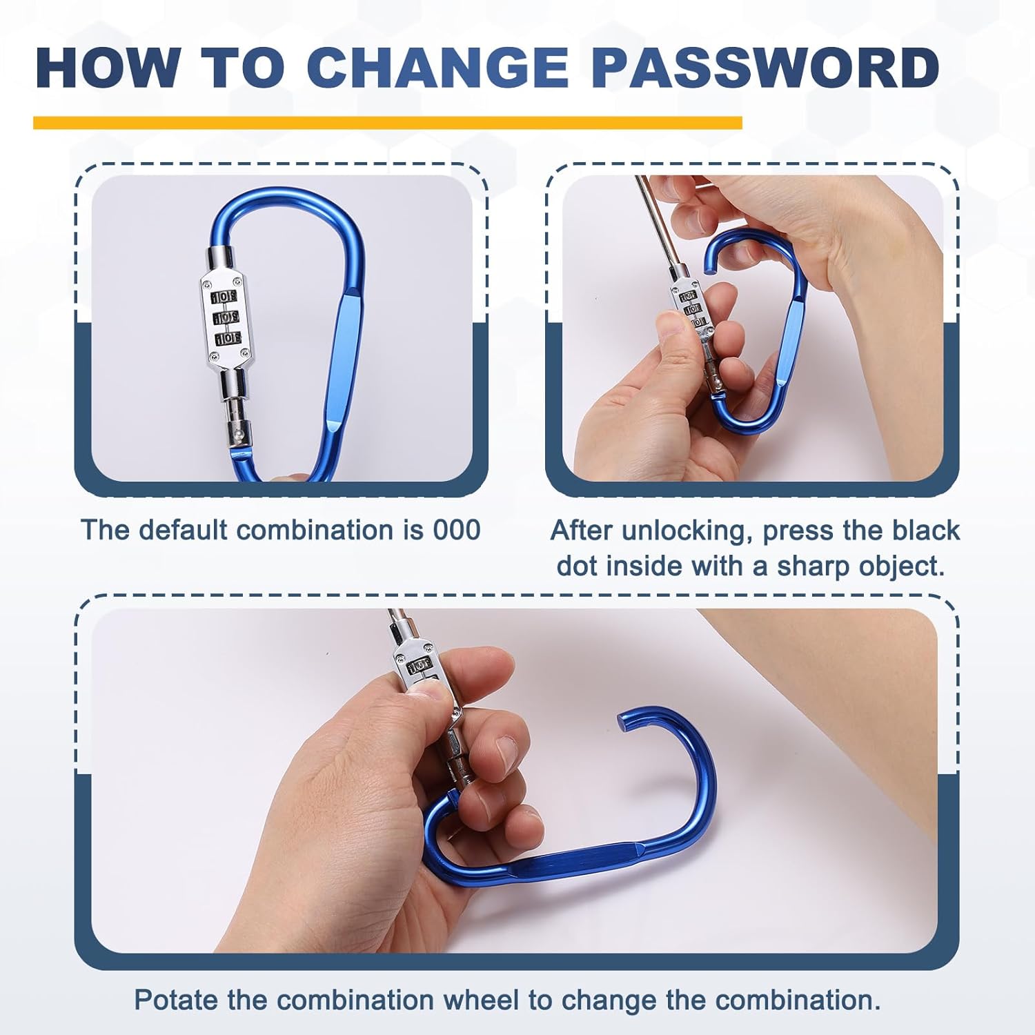 Reasons for selection - This stainless steel wire rope is made of PVC and aluminum alloy with a rust-proof surface. The keyless combination lock is made of zinc alloy, which is hard, tough, lightweight, rust-proof and corrosion-resistant, and has excellent impact resistance. It is not easy to break or deform even after long-term use. When used in conjunction with the wire rope, it can enhance the security of items.Measurement - Wire Rope Length: 1 m / 3.3 feet; Wire Rope Diameter: 2.5 mm / 0.1 inch; D-Ring Clip Height: 97 x 46 mm / 3.8 x 1.8 inch; D-Ring Clip Width: 45 x 28 mm / 1.8 x 1.1 inch; Wire Diameter: 6 mm / 0.24 inch; Package Contents: 1 Pcs x Combination Lock, 1 Pcs x Steel Wire Rope.Suitable for - This security cable combination lock features a D-shaped lock body design with a moderately sized opening, making it highly adaptable. It can securely lock the frames, baskets, and helmets of bicycles, motorcycles, and electric bikes, and can also be used to secure suitcases, toolboxes, lockers, backpacks, mailboxes, and other items, meeting diverse needs in various scenarios.Installation - The 3-digit combo D-shape lock supports thousands of combinations for the three-point combination, and is secure and reliable. The initial combination is 000. To use it, simply turn the front of the lock to the left to unlock it, then press the black spots inside the lock with a target object, and while holding it down, rotate the combination wheel to change the combination.Kind tips - Please confirm the correct size before placing your order.