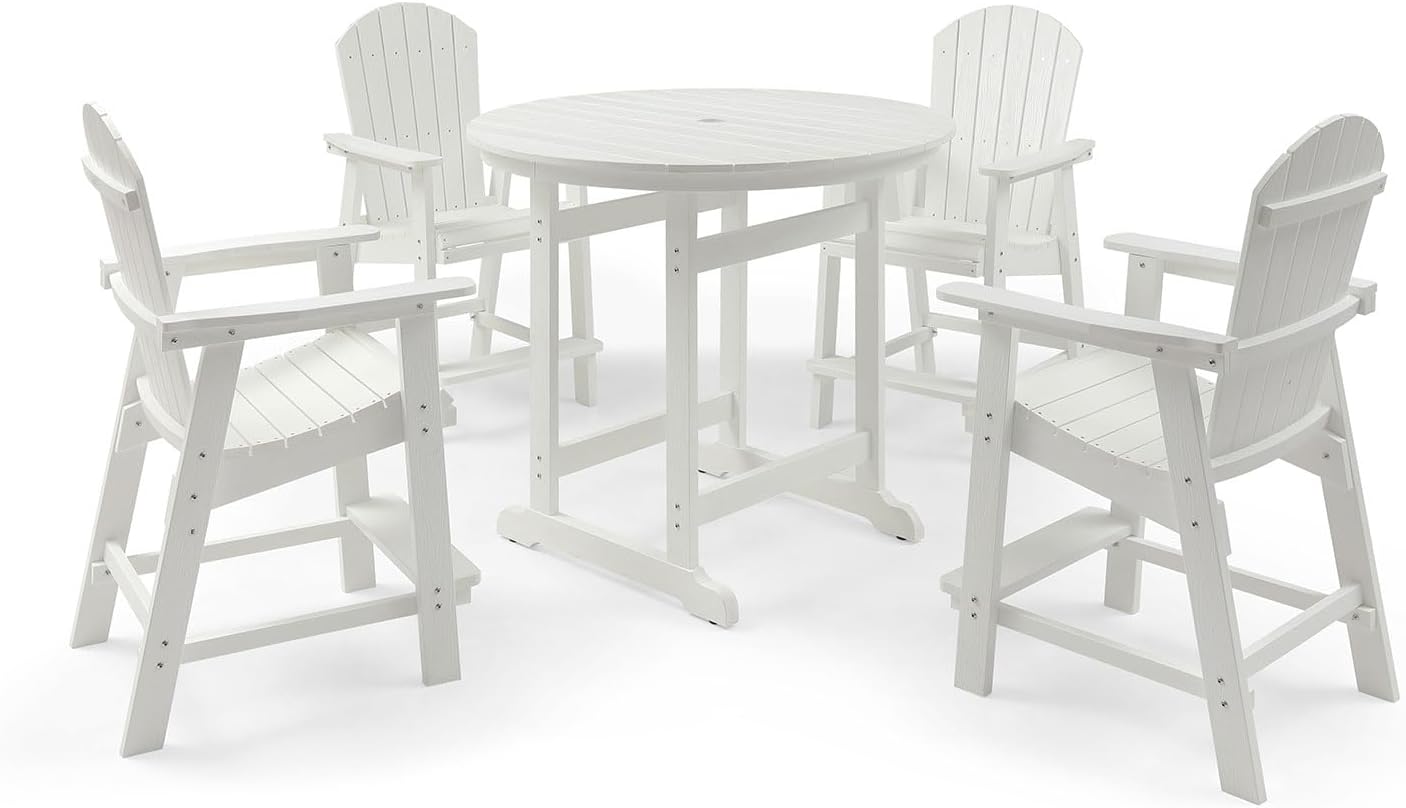 Patio Bar Table with Umbrella Hole(1.97"), White