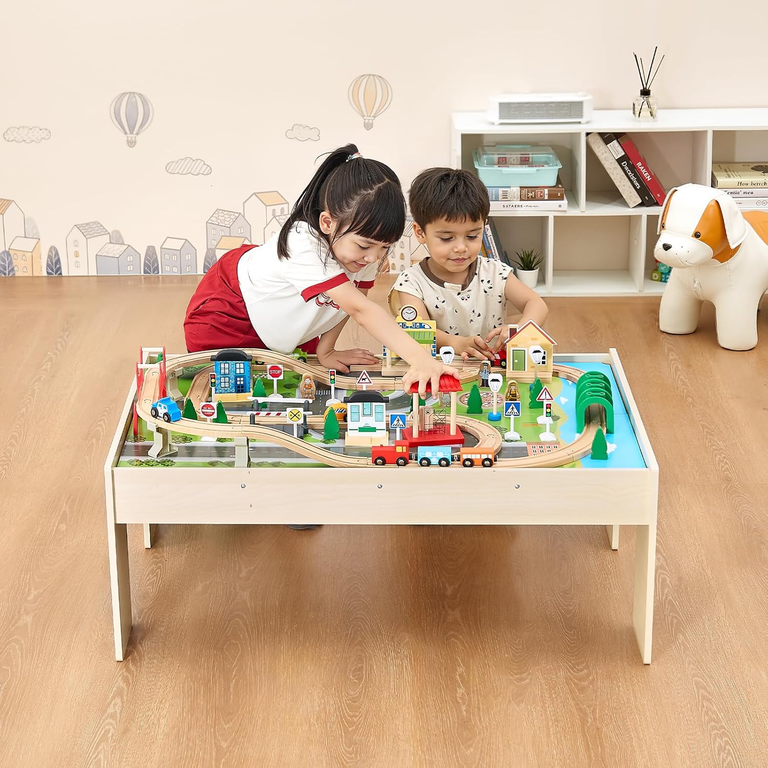 | Item Type Name | 84 Multicolor Pieces Wooden Kids Activity Table with Collapsible Storage Bin, 3-in-1 Wooden Train Set for Gaming, Drawing, Reading, Eating, Creative Toy Set for Kids Ages 3+ |